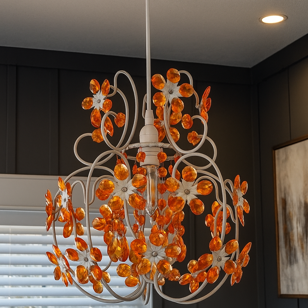 Fleur de Cristal on kevyt ja näyttävä kattokruunu, jossa yhdistyvät ranskalainen design, kukkamuotoilu ja lasin kaunis loisto. Valaisimen herkkä metallirunko kaartuu kukkamaisesti ympäröiden lasisia terälehtiä, jotka heijastavat valon pehmeästi ja luovat huoneeseen elegantin tunnelman.