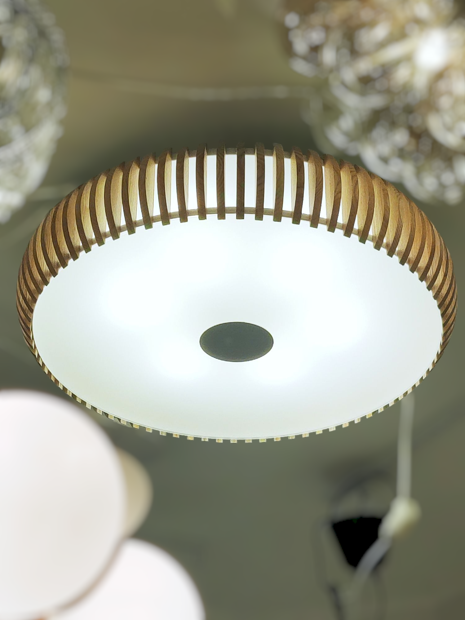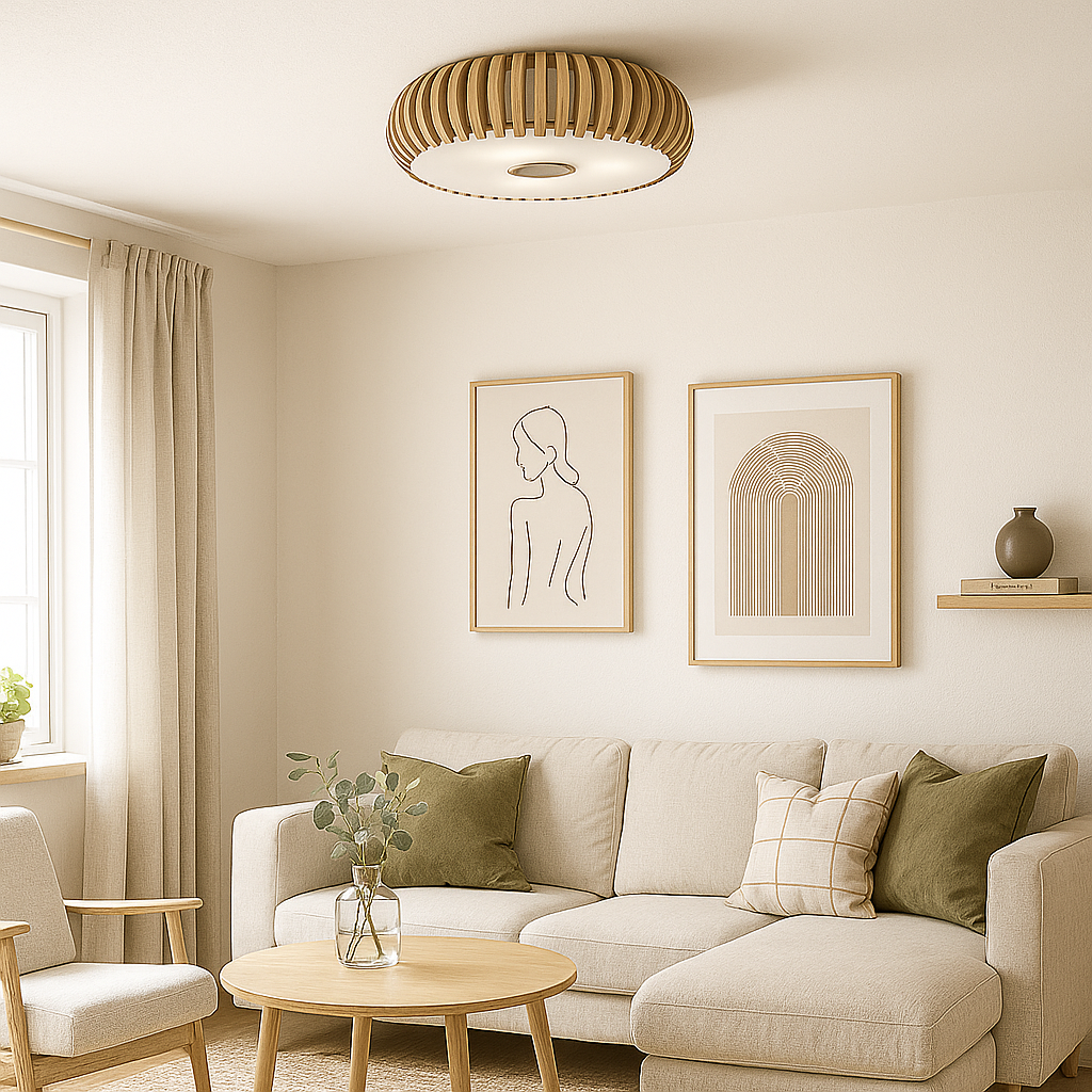 Avainsanat: Kattovalaisin, säle, puinen, valaisin, lamppu, kattolamppu, plafondi