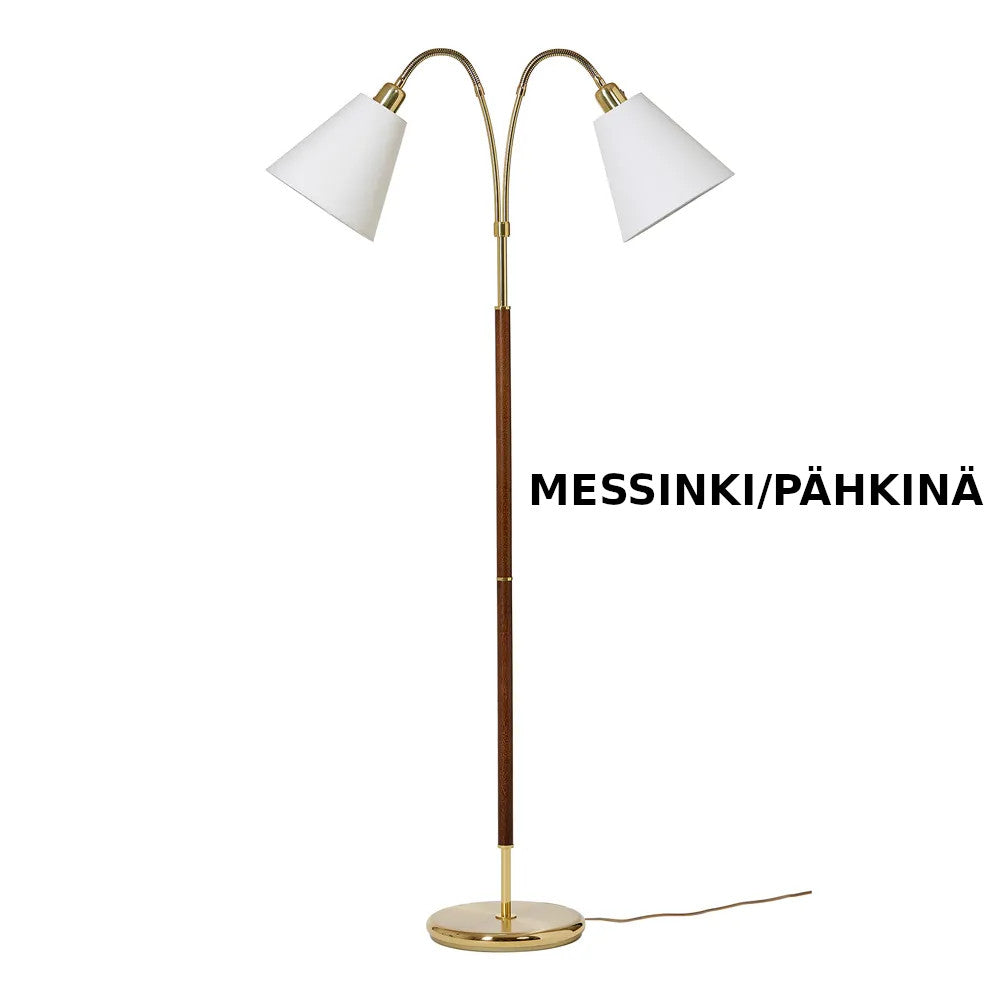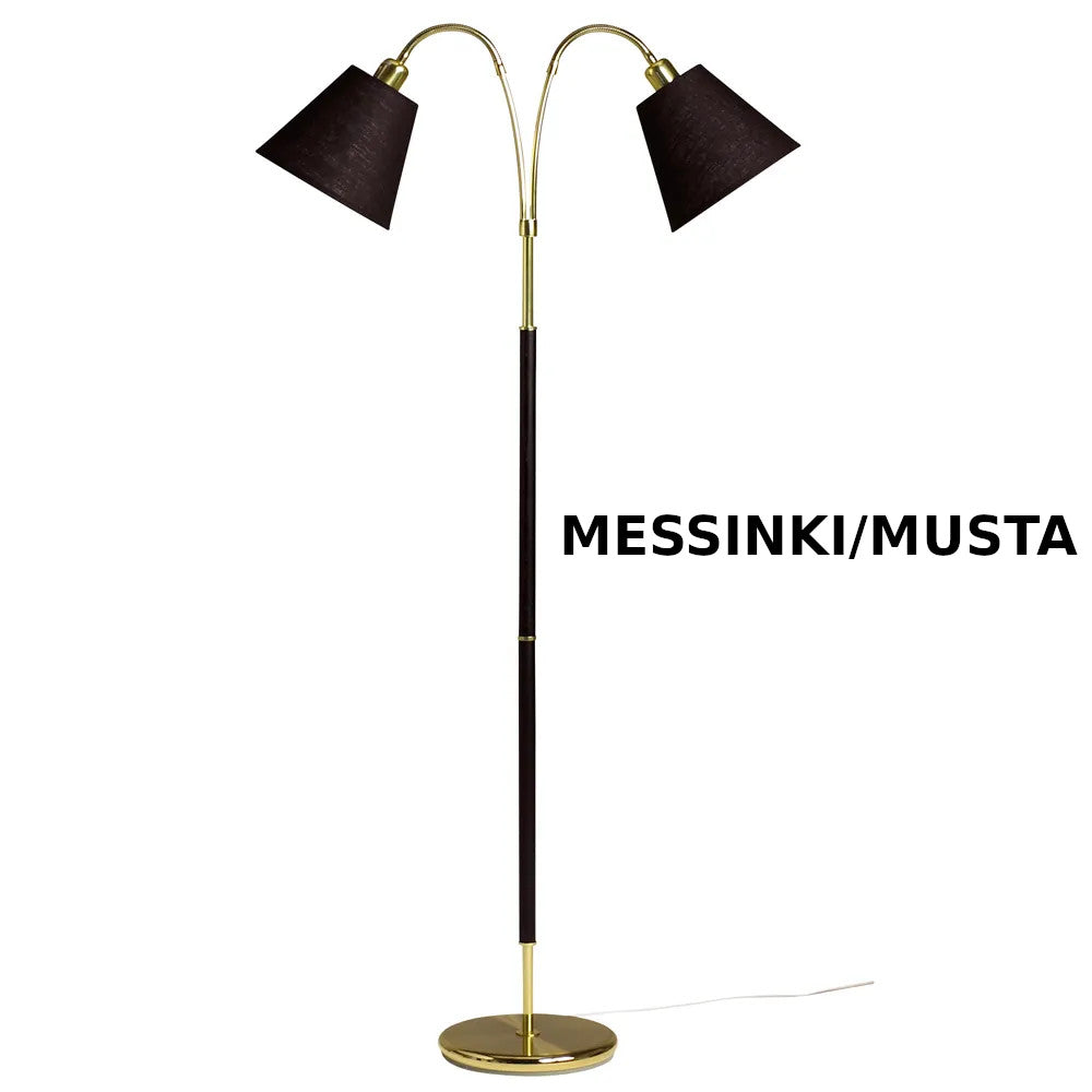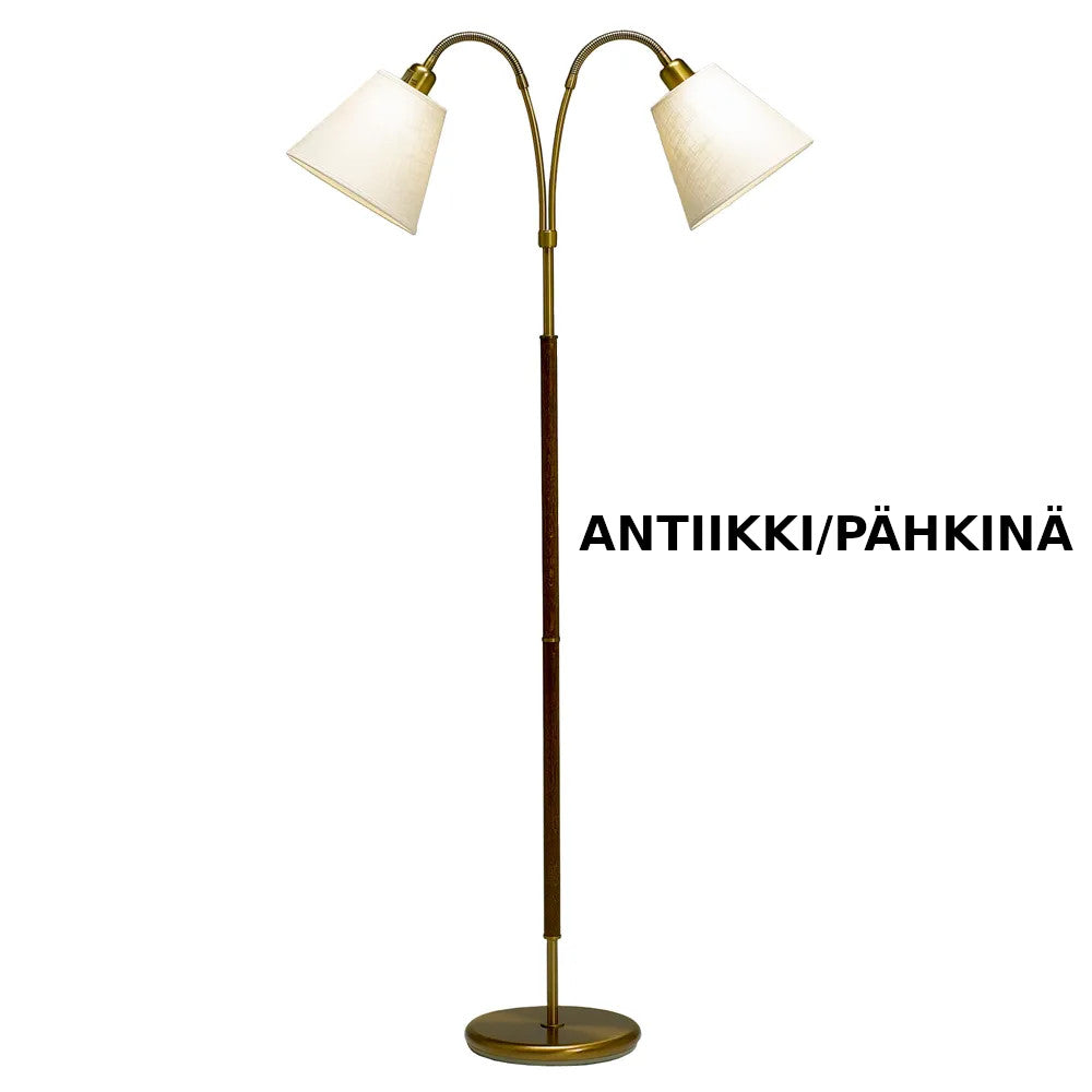 Tullgarn G 759 on 2-haarainen suunnattava lattiavalaisin sopii hyvin esimerkiksi olohuoneeseen tai makuuhuoneeseen lukuvaloksi tai yleisvaloksi. Sen voi taipuisan vartensa avusta suunnata hyvin. Kytkimet löytyvät varjostimien juuresta joten päälle ja pois kytkentä onnistuu helposti.